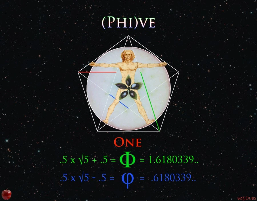 The Fibonacci Sequence and the golden number, Phi(and phee) are closely related to the number five. The flower of every edible fruit has five petals.Man, as a microcosmic vessel of the most complex order and of the most ingenious design, has been cast into the ever-moving, drifting, shifting tidal seas of this universe.