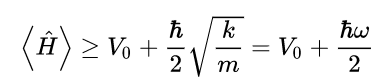 A more thorough treatment, showing that the energy of the ground state actually saturates this bound and is exactly E0 = V0 + ħω/2, requires solving for the ground state of the system.